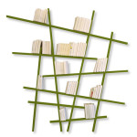 La libreria a parete Mikado dell’azienda francese Compagnie e disegnata da Jean-François Bellemère è composta da dieci barre a sezione quadrata di 3 cm: sei disposte orizzontalmente e quattro disposte verticalmente. Ricordando il gioco del Mikado, le barre di legno dellla libreria Mikado Compagnie sembrano assemblate in modo casuale, pur seguendo uno schema di montaggio preciso.