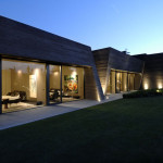 La facciata posteriore della casa è completamente aperto verso il giardino dove si trovano salotto, sala da pranzo, biblioteca, studio e camere da letto. In questa facciata troviamo ampie finestre, come la grande finestra del salone principale a scomparsa totale, in modo da rendere il soggiorno completamente aperto al aree esterne. Il progetto include anche un elegante giardino, un laghetto e un campo da tennis.