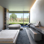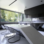 Il soggiorno e la zona pranzo sono invasi da luce naturale attraverso le grandi finestre, completata da illuminazione artificiale minmal ben nascosta. Legno, acciaio inox, metallo e vetro sono gli elementi utilizzati per progettare gli intern. Per tutto il suo lusso e splendore, nel complesso gli interni sono intimi ed equilibrati in ogni parte.