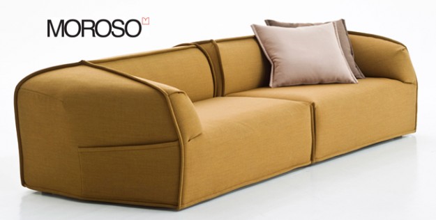 Il nome nasconde in realtà un’identità inglese che la dice lunga sulle caratteristiche distintive della nuova seduta: Moroso, Asymmetric, Sofa, System, Adorably, Stitched.