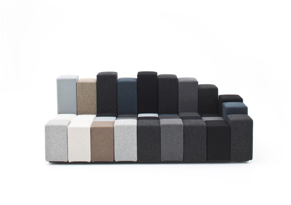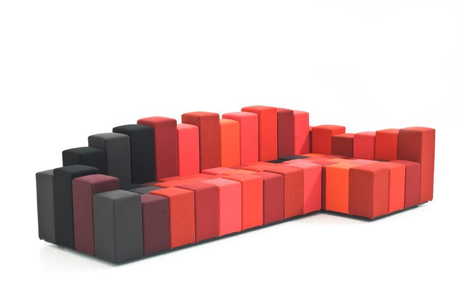 Materiali: Singoli moduli realizzati in poliuretano espanso di diverse densità. In basso più rigidi per contenere al il perno metallico e nella parte alta più morbidi per dare comfort alla seduta.