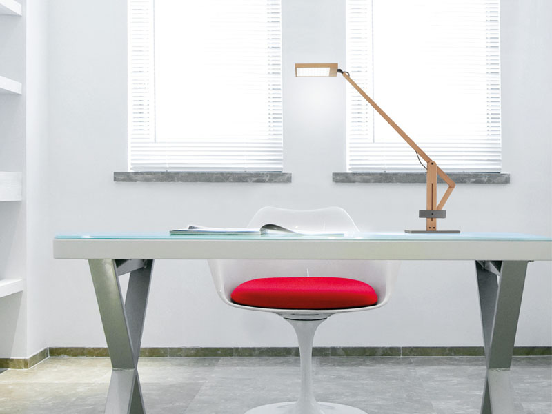 Leva risulta particolarmente adatta per illuminare una scrivania sia a casa che in ufficio o spazi pubblici (viene fornita dotata di un morsetto di fissaggio al piano) e si caratterizza per la finitura in legno di faggio. E’ possibile inoltre completarla con una base d’appoggio quadrata in acciaio in alternativa al morsetto fornito di base.