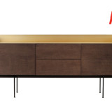 La madia Stockholm Punt è caratterizzata dai tre lati sopraelevati, bordati in rosa pallido o oro, che generano un funzionale elemento di sostegno al piano d’appoggio. Le sottili gambe sono realizzate in alluminio anodizzato e vernice epossidica nei colori bianco, nero, pietra o marrone scuro.