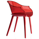 Colori: sedile e gambe rosso lucido, schienale rosso trasparente / sedile e gambe bianco lucido, schienale trasparente neutro / sediele e gambe bianco lucido, schienale verde trasparente / sedile e gambe nero lucido, schienale trasparente neutro / sedile e gambe nero lucido, schienale trasparente grigio fumè