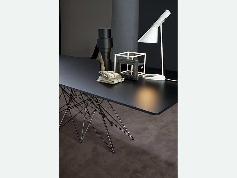 Octa Bonaldo è un tavolo fisso con base in acciaio cromato, verniciato (bianco o grigio antracite opaco), oppure in black nickel. Le gambe sono in effetti le vere protagoniste di Octa Bonaldo: che traggono ispirazione dall’antico gioco cinese dello Shanghai e realizzate in tondino di acciaio piegato e saldato, estremamente leggero ma sufficientemente robusta da sostenere una superficie, costituiscono una base visivamente leggera, pur dando l’impressione di grande solidità e stabilità.