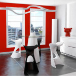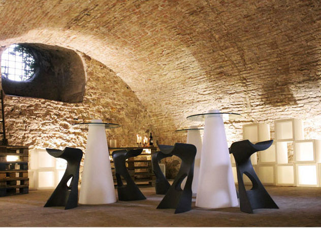 Lo sgabello Koncord Slide, snello nella forma e agile negli spostamenti, riassume in una sueprficie minima l’avanguardia e la modernità delle forme, design moderno tipico di Karim Rashid, costituito da un pezzo unico in polietilene rotostampato.