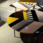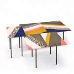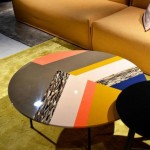 Patricia Urquiola utilizza Alicrite® per la nuova collezione di tavolini Fishbone Moroso, il cui top multimaterico è caratterizzato da un motivo decorativo a lisca di pesce che interpreta in chiave contemporanea la tecnica dell’ intarsio, esaltando le diverse finiture ed i diversi colori. Gli originali abbinamenti giocano sull’accostamento in maniera apparentemente casuale di fantasie naturali a tinte pastello, composte da corni, smalto senape, colori militari, petrolio, sabbia fino ad interpretazioni maschili di tessuti come tweed e colori pieni come l’avio (azzurro), il bordeaux e il ghiaccio. Finiture lucidissime in sintonia con la sfaccettata fantasia della designer per tutte e tre le versioni presentate che si differenziano per punte di giallo la prima, toni dal verde all’azzurro la seconda, ed un mix tra colorazioni fragola, mou, cacao e tortora la terza. Un progetto che sottolinea la versatilità di Alicrite® e la capacità di dar vita a prodotti finiti dalle ricche colorazioni che imitano materiali naturali come il corno, la madreperla, il marmo, la tartaruga.